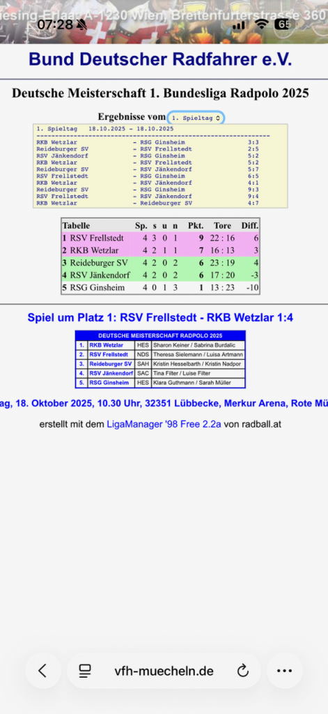 Hinzu kommt ein Sieg gegen den RSV Jänckendorf, ein Unterschieden gegen RSG Ginsheim und eine Niederlage gegen Rendsburg. In einem packenden Finale und einer taktisch sehr guten Eistellung durch Trainer Thomas Bottelberger hält Sabrina Burdalic 6 Vier Meter ! ! und Sharon fährt ihren Strafraum sensationell ab und lässt fast kein Schuss aufs Tor zu , Am Ende steht ein perfekter Final Sieg mit 4-1, taktisch wie spielerisch eine Meisterleistung.